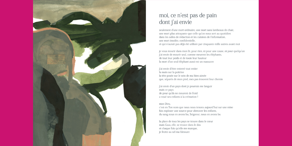 Ce recueil rassemble cinq poèmes écrits par deux poètes, Hamed Ashour et Haidar Alghazali, et une poétesse Nisrine Suleimane, vivant aujourd’hui à Gaza, ce recueil rassemble :